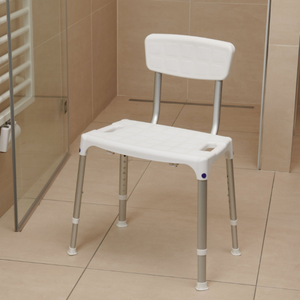 Silla de ducha de máxima seguridad y comodidad ideal para duchas grandes. Fabricado en plastifico de alta calidad y aluminio es fácil de limpiar.